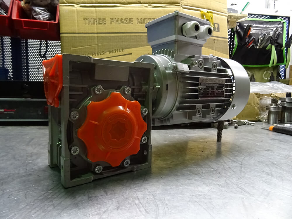Редукторы, каталог которых очень обширен, могут отличаться по мощности двигателя и расположению передачи, находящейся сбоку, над или под зубчатым колесом. Механизм редуктора приводится в движение электродвигателем, в различных моделях устанавливаются двигатели мощностью от 0,12 до 5,5 кВт, хотя могут использоваться и другие силовые установки. В случае, когда нужна невысокая скорость крутящего вала при большом крутящем моменте, применяется двухступенчатый механизм, в исключительных случаях используются трехступенчатые модели.